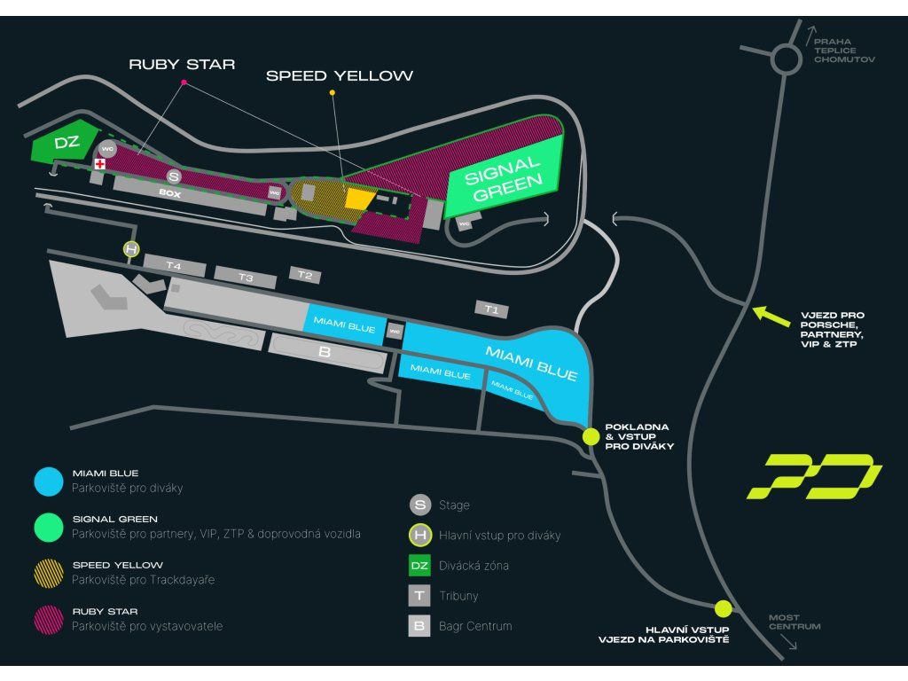 * Držitelé karet ZTP/P mají parkování zdarma a je pro ně vyhrazeno v areálu autodromu Most (vjezd tunelem) Parkoviště SIGNAL GREEN.